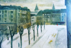 ![]() | ![]() Promenade de Bastions, Ginebra, 1998. Óleo sobre cartón, 70 x 100 cm. Colección privada. | ![]() Árboles, tranvía y nieve, 2005. Óleo sobre cartón, 105 x 105 cm. Porpiedad del autor. | ![]() Tranvía en Ginebra, 2006. Óleo sobre cartón, 70 x 100 cm. Colección privada. | ![]() |